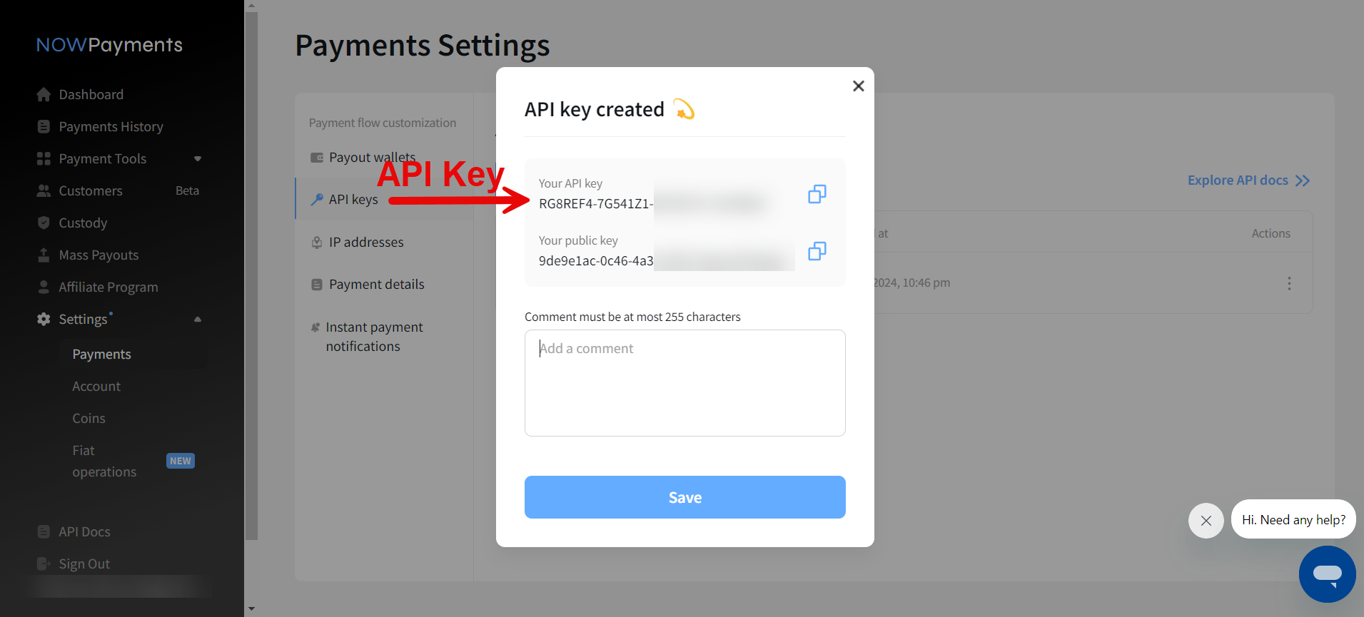 In this step, you need to create an API Key. Copy this key and configure it in your bot.